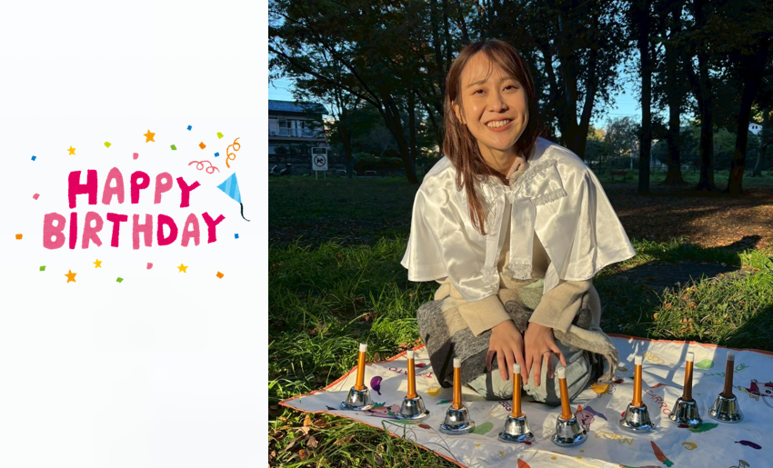 妻から夫へハッピーバースデー♪公園で爽やかにハンドベル
